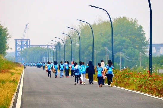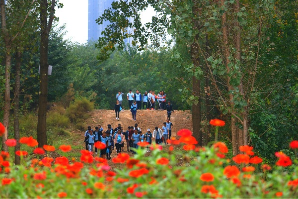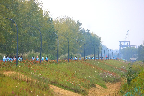 上半場是公司團建活動,全體人員徒步走路線:青奧森林公園→江堤路→粉黛花田→洲島家園。(約10公里)